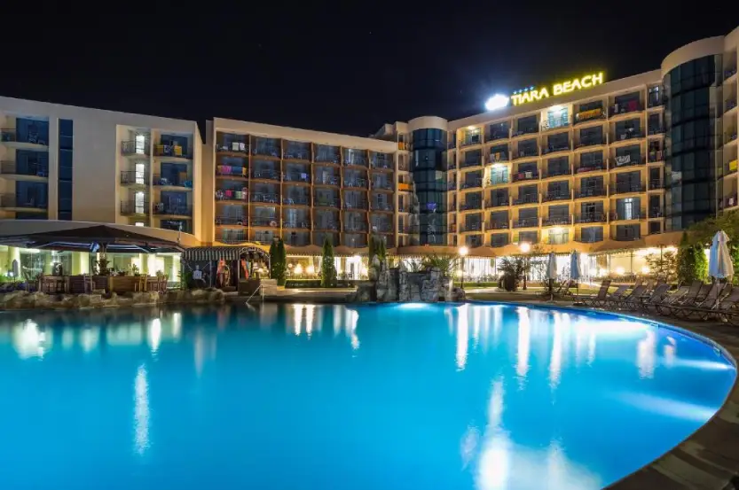 Tiara Beach, що працює за системою "все включено", розташований на курорті Сонячний Берег, за 150 метрів від пляжу. До послуг гостей відкритий і критий басейни. На території проводяться безкоштовні вечірні розважальні заходи та працює дитячий клуб. За додаткову плату гості можуть відвідувати оздоровчий спа-центр помешкання із сауною, гідромасажною ванною та масажними кабінетами.